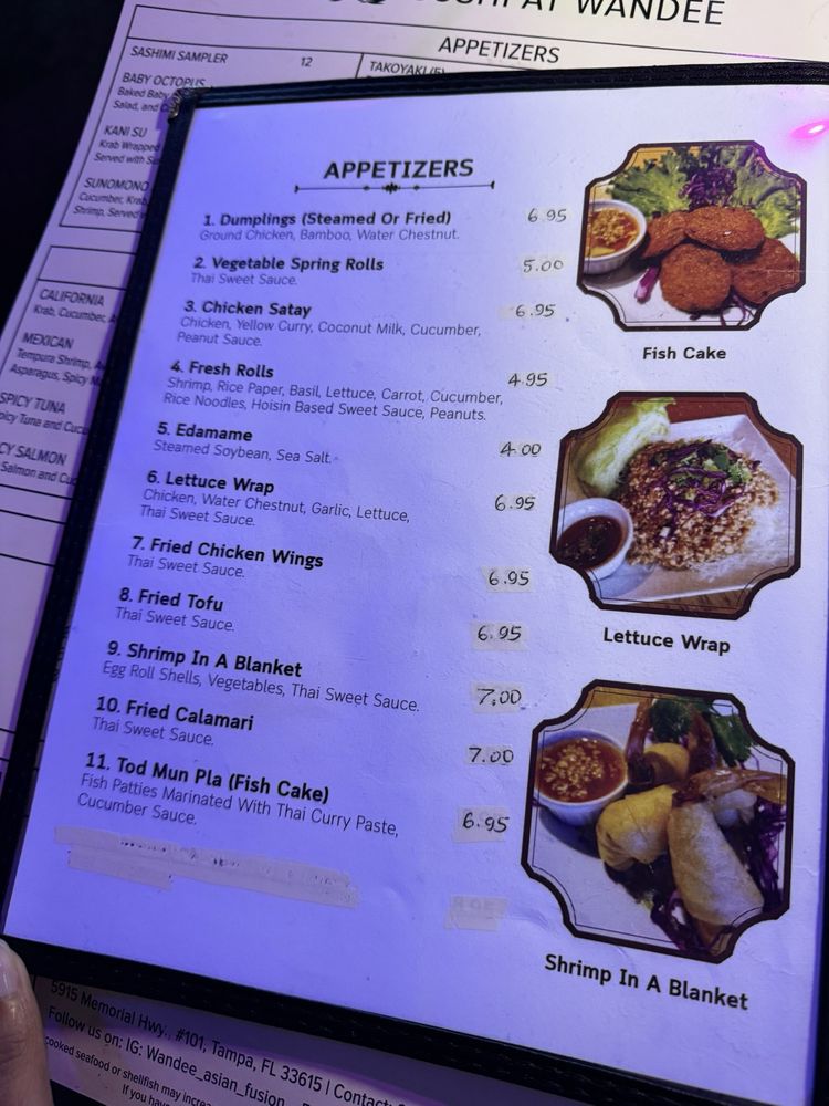 Wandee Asian Fusion, located in Tampa, FL, offers a delightful blend of Thai, Vietnamese, and Korean cuisine. Their menu features a wide variety of appetizers, soups, and salads, all prepared with fresh and quality ingredients. Customer reviews praise the inviting ambience, extensive menu options, quick and friendly service, and unique presentation of dishes. Standout menu items include the Chicken Satay, Papaya Salad, and Thai crispy Duck salad. The restaurant offers delivery, takeout, catering services, and has wheelchair accessibility. With a cozy and intimate atmosphere, Wandee Asian Fusion is a hidden gem for those looking to experience authentic Asian flavors in Tampa.